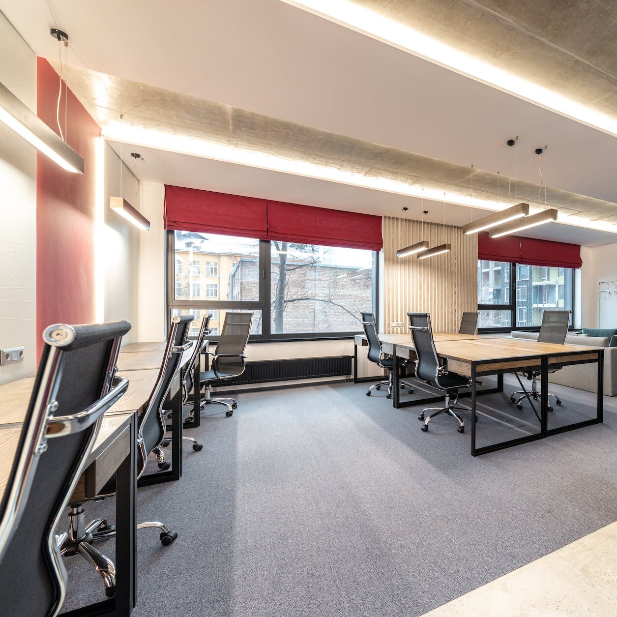 Previous Image Next Image office with tables and chairs near windows Photo by Max Vakhtbovych on Pexels.com